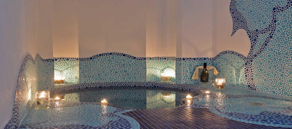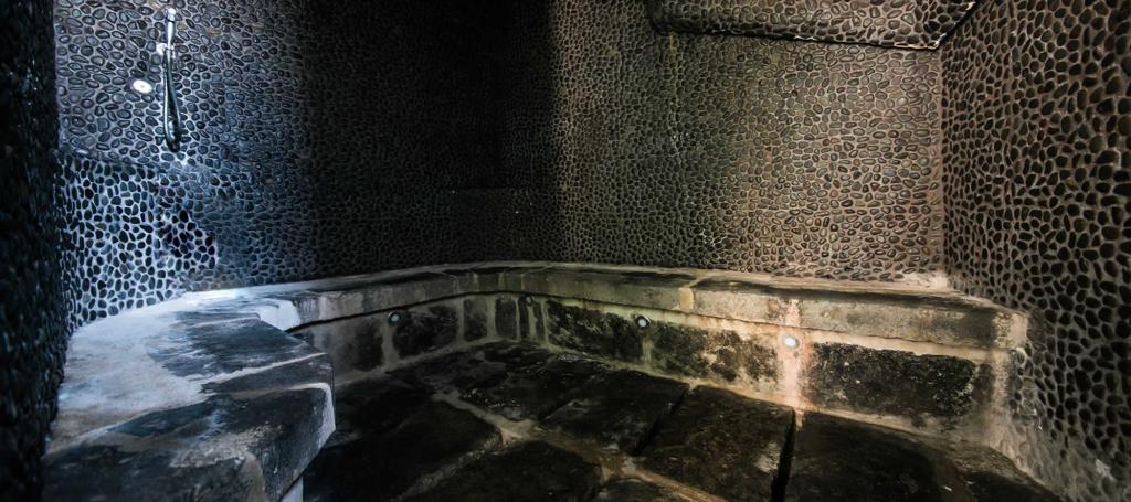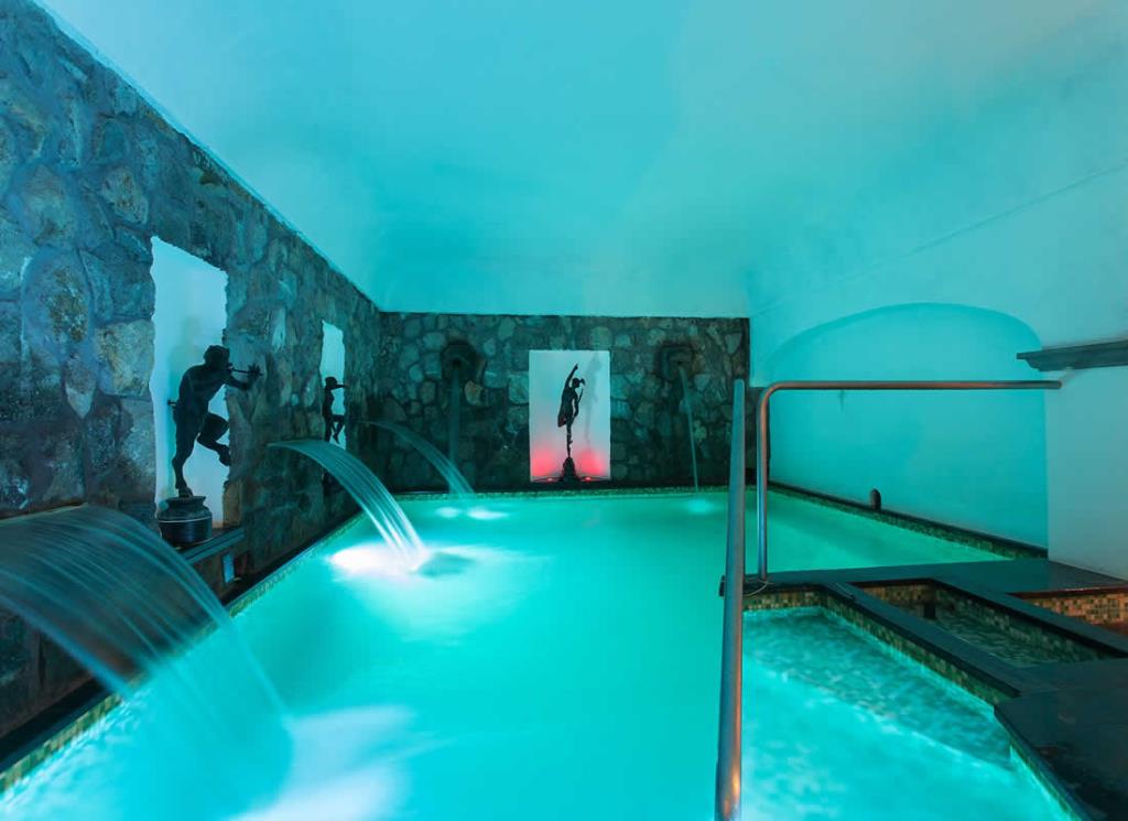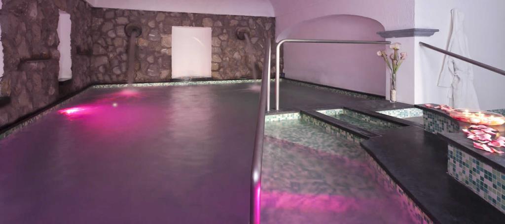 Dotato di 2 piscine esterne termali, bar con angolo TV Satellitare e angolo barbecue.