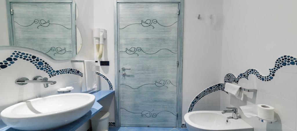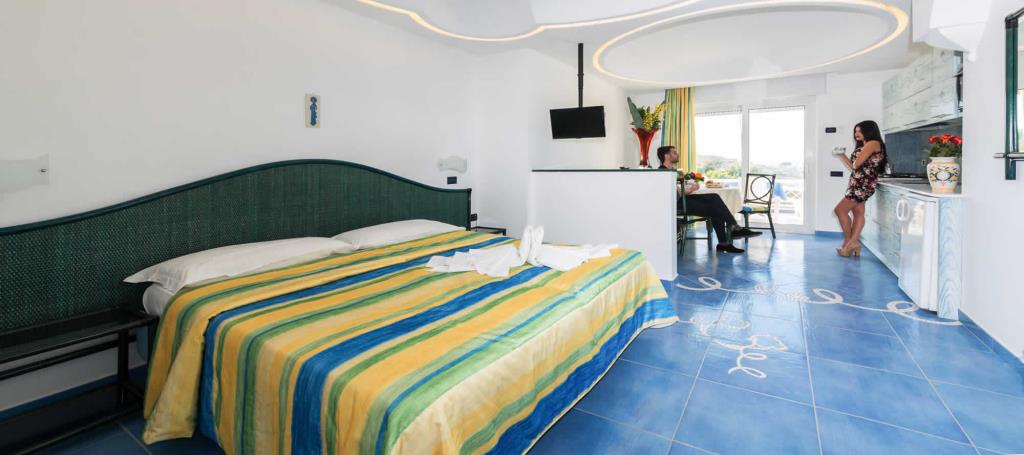 Tutte le camere dispongono di terrazzo vista mare, TV, telefono diretto, phon, riscaldamento e a richiesta cassaforte, frigobar e aria condizionata. Gli appartamenti finemente arredati e curati nei particolari hanno la zona notte divisa dall'angolo cottura, un ampio terrazzo con veduta, telefono diretto, televisione, phon, riscaldamento e a richiesta cassaforte e aria condizionata.