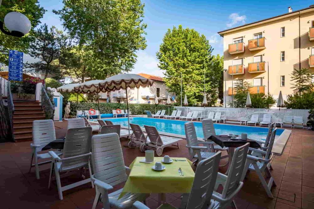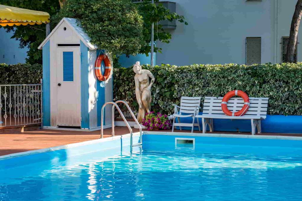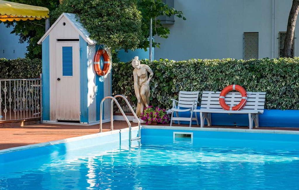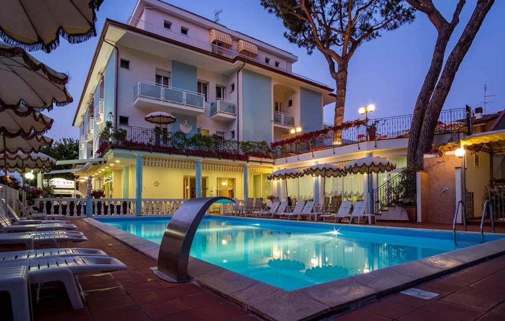 La struttura dispone di reception H24, bar, ristorante, Wi-Fi, pascina esterna con lettini, bar a bordo piscina, parcheggio incluso, spiaggia privata, terrazza, giardino, area giochi, servizi per famiglie, spazi per bambini, aria condizionata, ascensore, riscaldamento, sala TV.