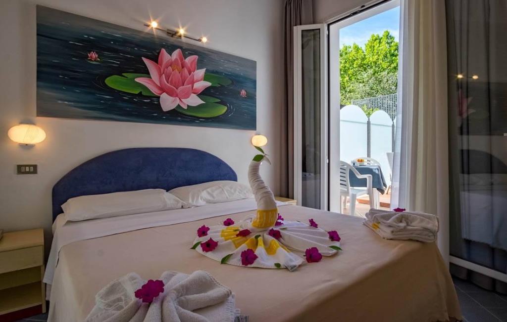 Tutte le camere sono dotate di Wi-Fi, bagno con doccia, arredi moderni, balcone ampio e arredato con tavolo e comode sedie (alcune con vista mare), Tv LCD, cassaforte, aria condizionata autonoma e ventilatore.