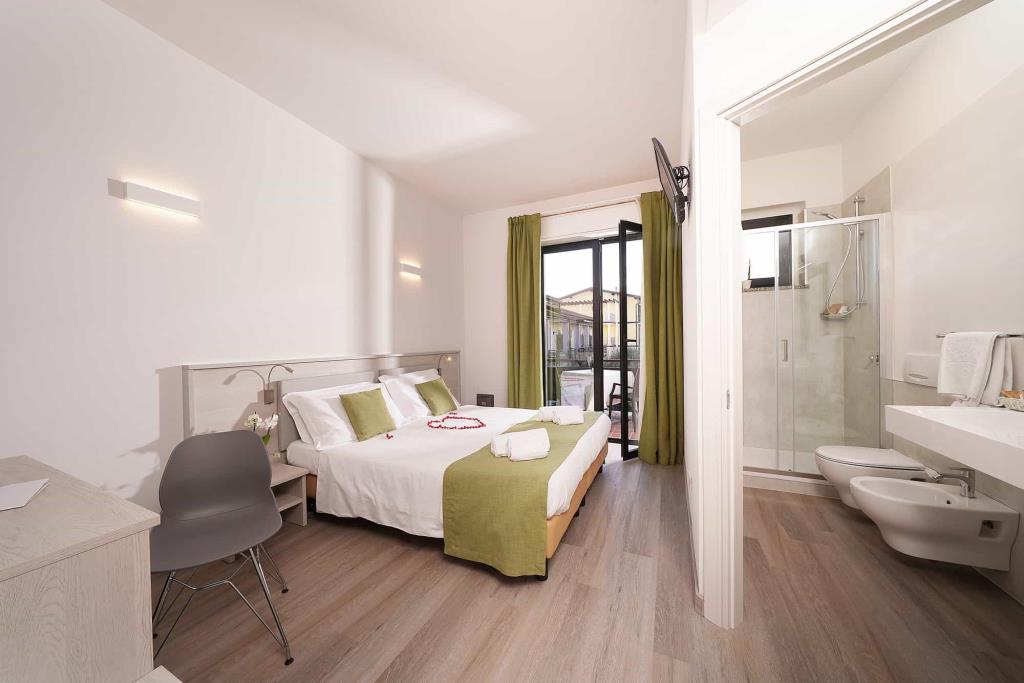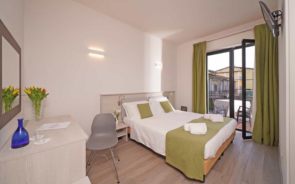 Disponibili camere Comfort e Superior. COMFORT ROOM: Le camere Confort, con un’ampiezza minima di 15mq, sono tutte dotate di balcone o terrazzo. Sono dislocate su due piani: piano terra e primo piano, con vista sugli uliveti della splendida Rocca di Manerba Ogni camera ha bagno privato con doccia e bidet, WC, specchio, asciugacapelli, kit di cortesia, set di asciugamani da camera, telefono, Wi-Fi Internet, Tv-Sat schermo piatto, cassaforte, minibar e aria condizionata. SUPERIOR ROOM: Le nostre camere Superior, con un’ampiezza di 20 mq, sono tutte dotate di balcone o terrazzo. Sono dislocate su tre piani: piano terra, primo piano e secondo piano. La vista può essere sulla nostra piscina (lato sud) o sugli uliveti della splendida Rocca di Manerba. Ogni camera ha un elegante bagno con ampia doccia e bidet, WC, specchio, asciugacapelli, kit di cortesia, set di asciugamani da camera, telefono, Wi-Fi Internet, Tv-Sat schermo piatto, cassaforte, minibar e aria condizionata.