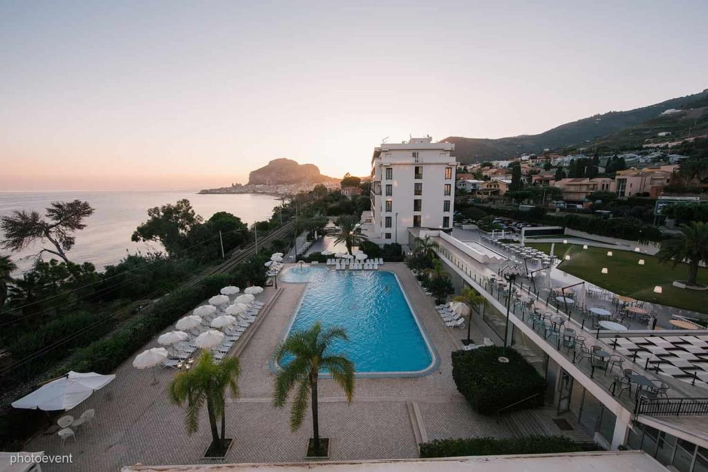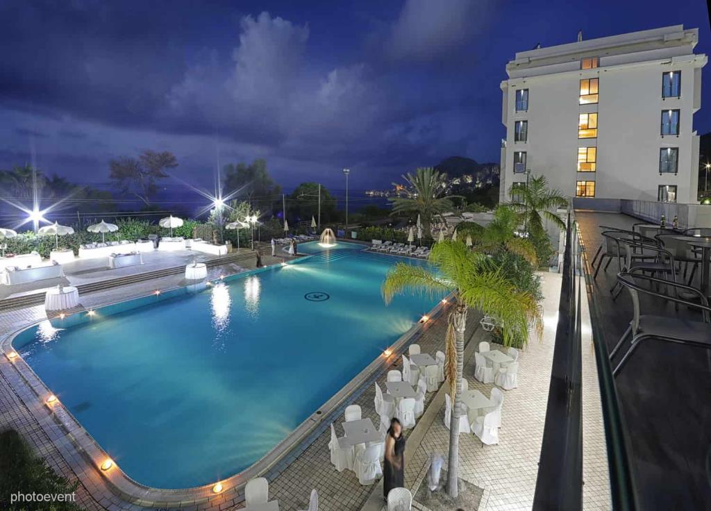 A pochi chilometri dall’Hotel è situato lo svincolo dell’autostrada per tutte le direzioni (Messina, Palermo o Catania) e per l’aeroporto di Punta Raisi, distante appena 100 km, mentre dal porto cittadino è possibile imbarcarsi nel periodo estivo per l’arcipelago eoliano che si raggiunge in poco tempo o per effettuare delle mini crociere lungo la costa. L’albergo costituito da tre edifici multipiano collegati tra di loro, tutti dotati di ascensori ed ampie terrazze che invitano ad ammirare il meraviglioso panorama costiero. Dalla scalinata si accede anche alla sottostante spiaggia attrezzata per elioterapia, dalla sabbia finissima e dorata, nella quale è possibile prendere un bagno salutare nelle acque cristalline ammirando le caratteristiche scogliere e la rigogliosa vegetazione mediterranea.