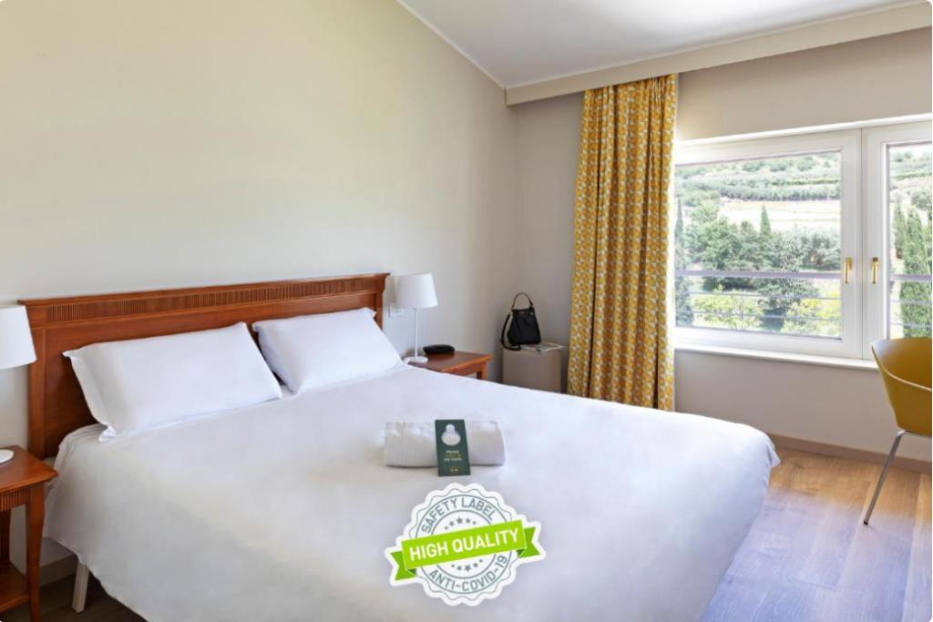 Tutte le stanze di questo hotel economico di Affi includono sempre un bagno privato in camera dotato di bidet, vasca o doccia con soffione XXL e un asciugacapelli, materasso e cuscini in Memory Foam prodotti in Italia, una cassaforte e un mini frigo per mantenere al fresco le tue bibite. Per un soggiorno sempre più smart hai a disposizione una connessione WiFi illimitata e gratuita e una Smart TV 40", con Chromecast integrata, per goderti al meglio i canali Sky gratuiti e avere la libertà di vedere i tuoi contenuti multimediali preferiti.